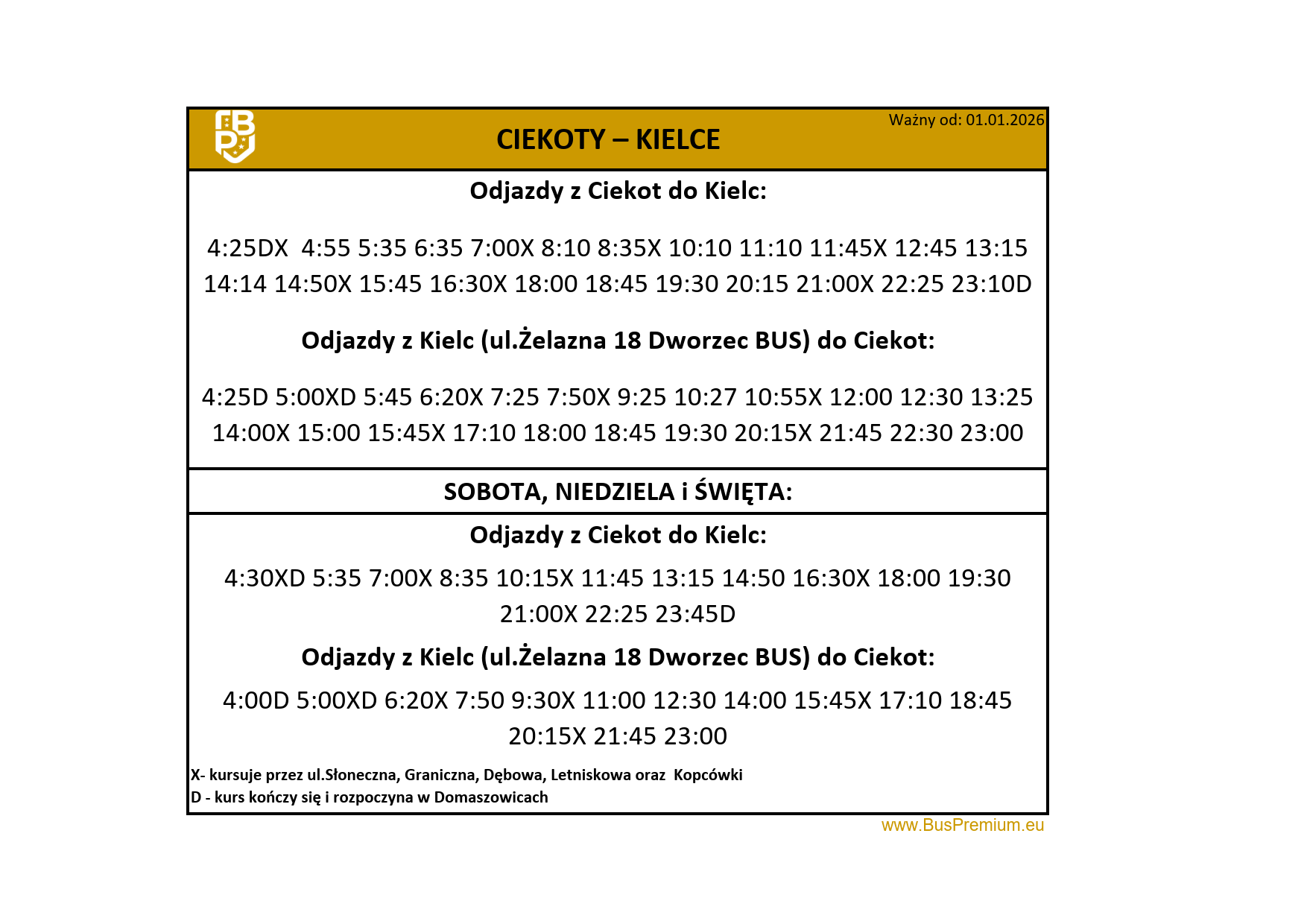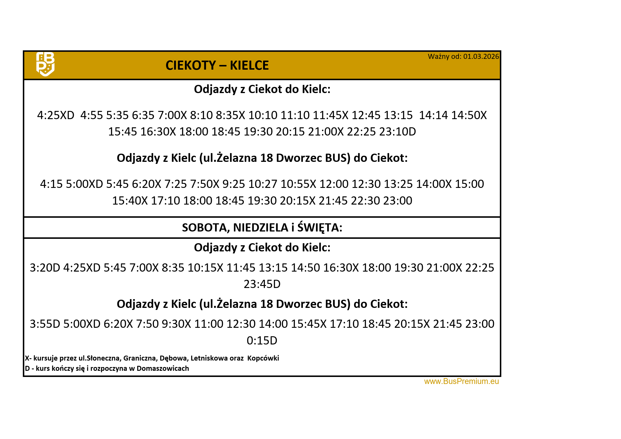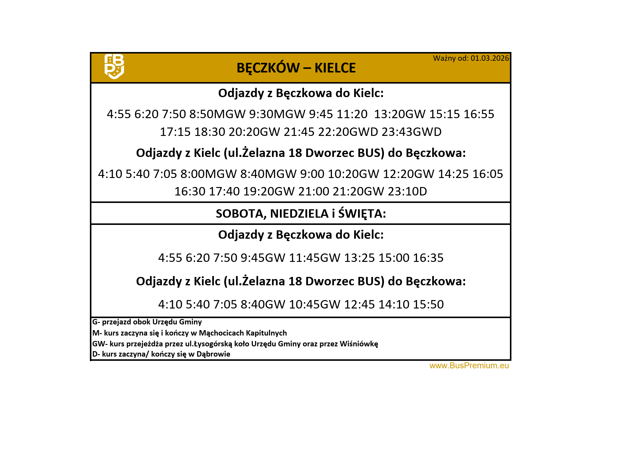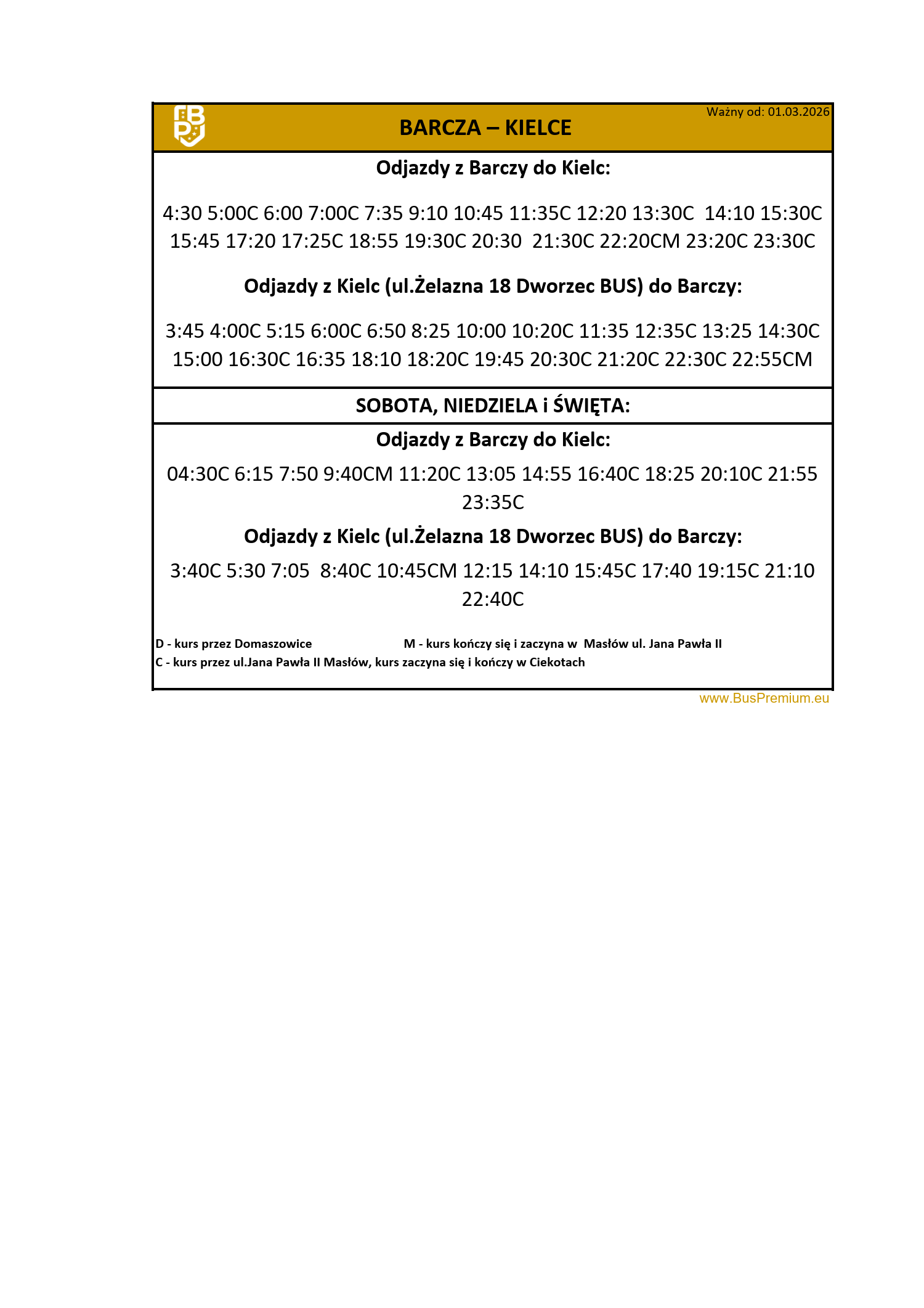 Planujesz podróż? Sprawdź aktualne rozkłady jazdy Bus Premium i wybierz najlepsze połączenie dla siebie! Gwarantujemy komfortowe przejazdy, punktualność oraz bezpieczną podróż. Dzięki naszym regularnym kursom dotrzesz do celu wygodnie i na czas. Zapraszamy do zapoznania się z harmonogramem przejazdów!