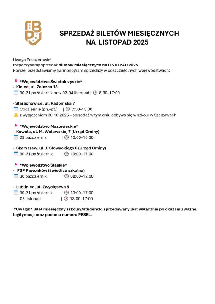 SPRZEDAŻ BILETÓW LISTOPAD buspremium 2025-10-29